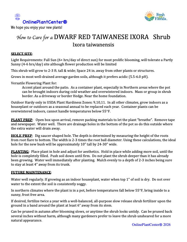 Ixora Dwarf Red Taiwanese Shrub (Fiery Red Flowers) in a 10 in. (3 Gal.) Grower Pot